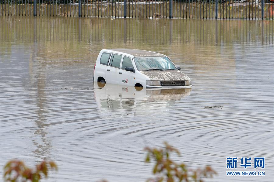 10月14日,在日本长野市,一辆汽车浸泡在洪水里。受纵贯东日本强台风“海贝思”带来的强降雨影响,日本多地暴发洪灾,已造成33人死亡、19人失踪。据日本共同社13日统计,“海贝思”过境导致日本多处河流泛滥,目前有21条河流决堤24处。其中,流经长野县的千曲川决堤,造成长野市和千曲市大范围被淹,大片住宅区被洪水包围,有的房屋甚至被淹至2层。新华社记者华义摄