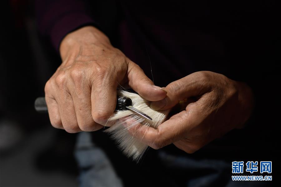 10月14日,湖笔制作技艺国家级代表性传承人邱昌明在非遗活态传承馆展示湖笔制作的择笔技能。新华社记者 黄宗治 摄