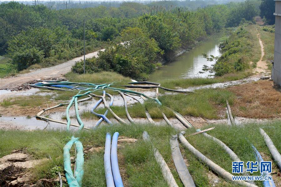 在江西省南昌市南昌县蒋巷镇,工作人员通过水泵从赣江中抽水保障当地农业用水。这是铺设的水管(10月10日摄)。 7月下旬至10月初,江西省平均降雨量为96毫米,比多年均值偏少约七成,排历史同期倒数第一位,持续的少雨天气导致江西省主要江河水位持续走低,多地出现不同程度的旱情。 针对当前旱情,江西各地纷纷采取措施,积极组织群众开展抗旱自救,力争将旱情带来的损失降到最低。 新华社记者 彭昭之 摄