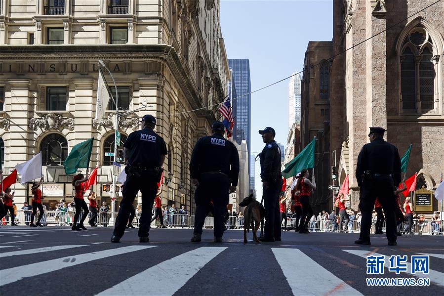 10月14日,在美国纽约曼哈顿第五大道,警察在哥伦布日游行上警戒。当天,纽约举行哥伦布日游行,纪念意大利航海家克里斯托弗·哥伦布首次到达美洲大陆。哥伦布日游行也是美国最大的展示意大利文化传统的庆祝活动。新华社记者李木子摄