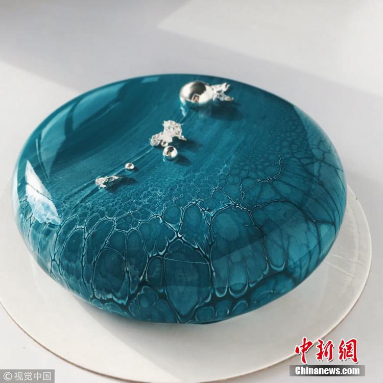 烘焙师运用特殊工艺制作的镜面慕斯蛋糕。图片来源:视觉中国