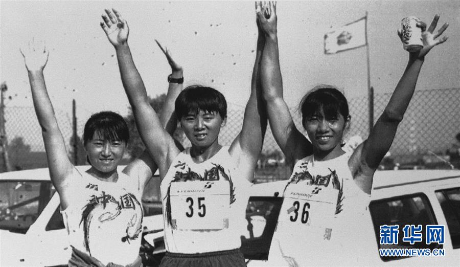 1995年9月12日,在罗马举行的第一届世界军人运动会军事五项比赛中,中国人民解放军代表队包揽了男女团体和个人四枚金牌以及男子个人银牌、铜牌和女子个人铜牌。这是获得女子团体冠军的王恋英、邵文芳和宋丽芳(右起)获胜后振臂欢呼。新华社记者王继雨摄