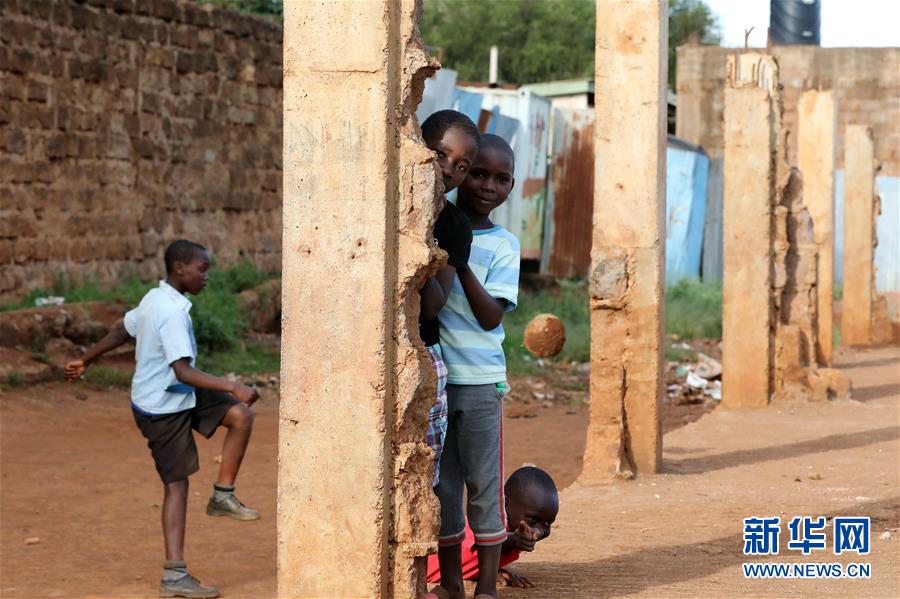 10月16日,在肯尼亚内罗毕基贝拉贫民窟,孩子们在放学后玩耍。新华社记者王腾摄
