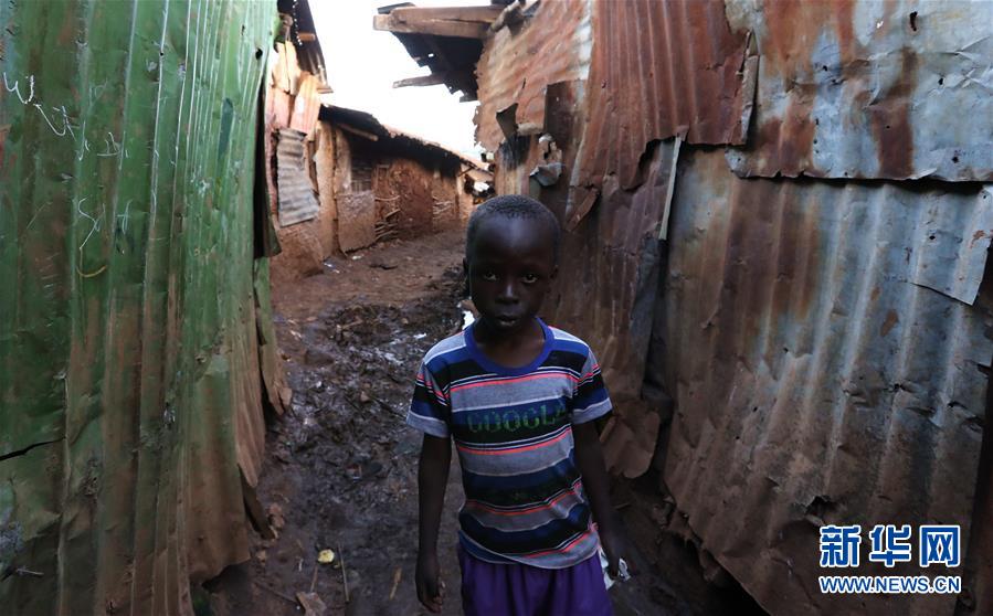 10月16日,在肯尼亚内罗毕基贝拉贫民窟,一名儿童在小巷中行走。新华社记者王腾摄