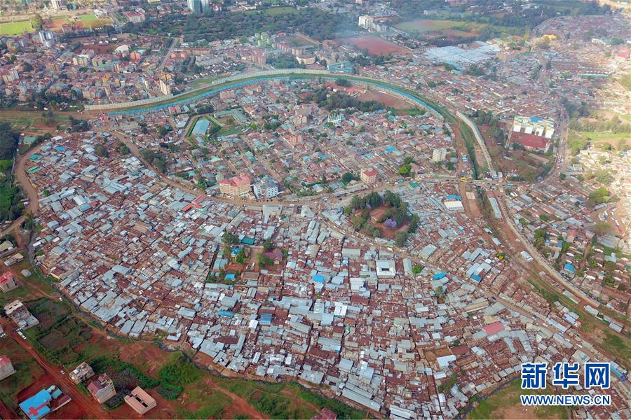 这是10月16日在肯尼亚内罗毕拍摄的基贝拉贫民窟(航拍照片)。新华社记者王腾摄