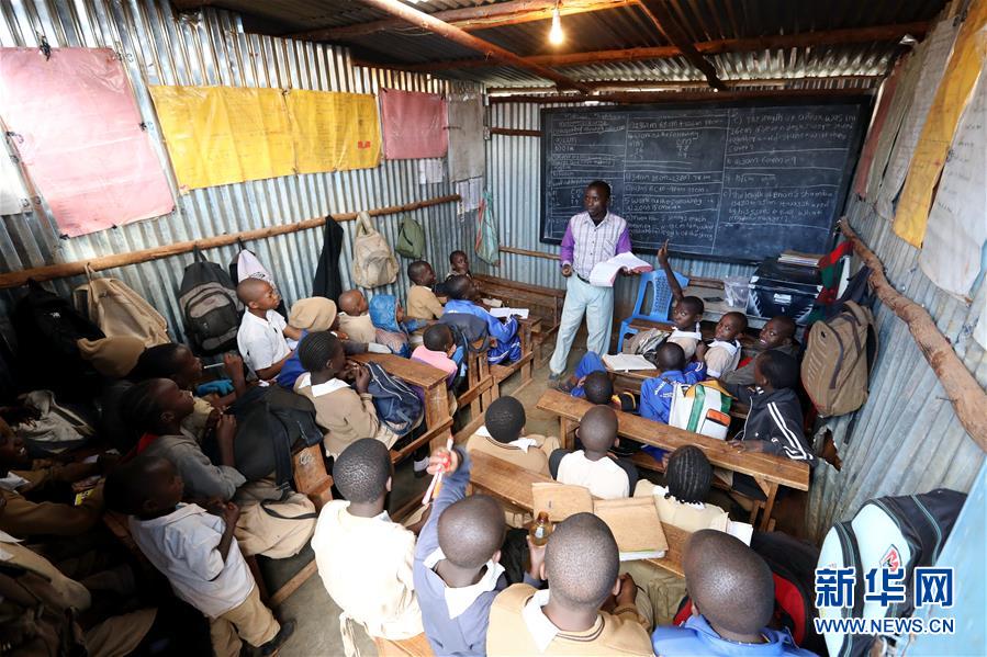 10月16日,在肯尼亚内罗毕基贝拉贫民窟,学生在社区学校上课。新华社记者王腾摄