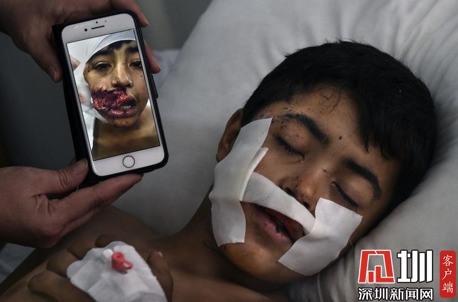 当地时间2017年5月19日,伊拉克哈曼阿里尔,这名男孩名叫Aymn Musa,今年12岁,他身上多处都是弹片擦伤,现在,他在位于哈曼阿里尔的战地医院治疗。这家医院由阿斯彭医疗队和从距离摩苏尔西部前线25公里赶来的的世界卫生组织救援队共同运营和管理。护士Annette Robinson说:“我们没有止痛药,只能就这么清洗伤口,这个孩子实在是太坚强了”。哈曼阿里尔战地医院由阿斯彭医疗队,和从距离摩苏尔西部前线25公里赶来的的世界卫生组织救援队运营和管理。医院提供紧急分类治疗、手术、X光、接生和急救医疗支援。