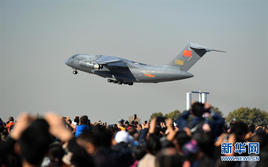 10月17日,大型运输机运-20进行飞行展示。 新华社记者 林宏 摄