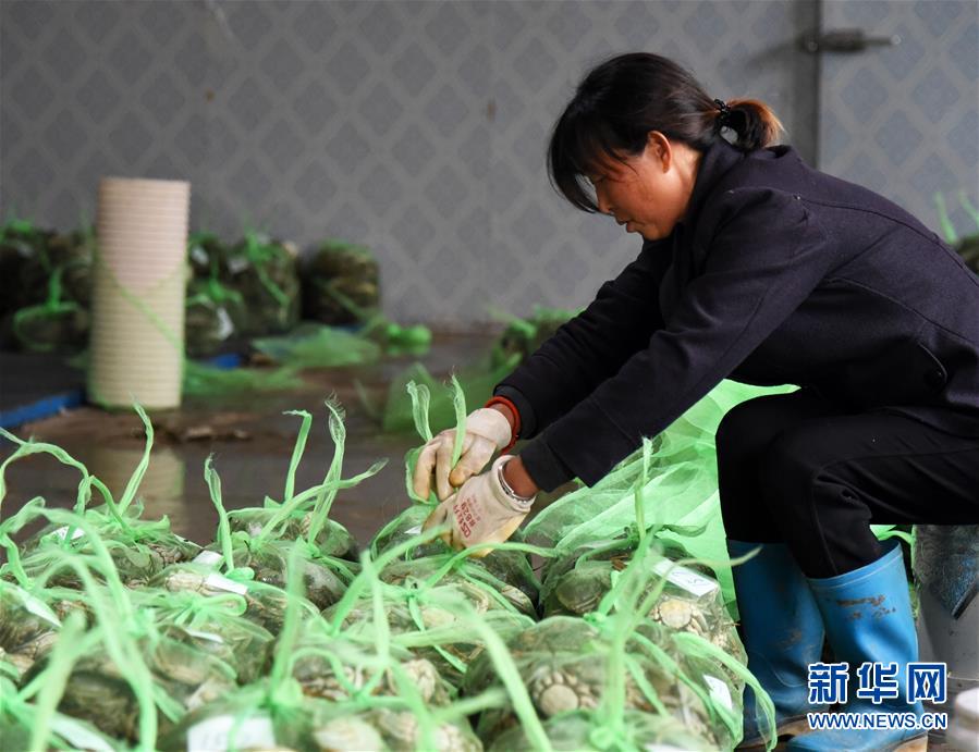 10月17日,东营市惠泽农业科技有限公司黄河口大闸蟹养殖区的工人在包装大闸蟹。新华社记者 王凯 摄