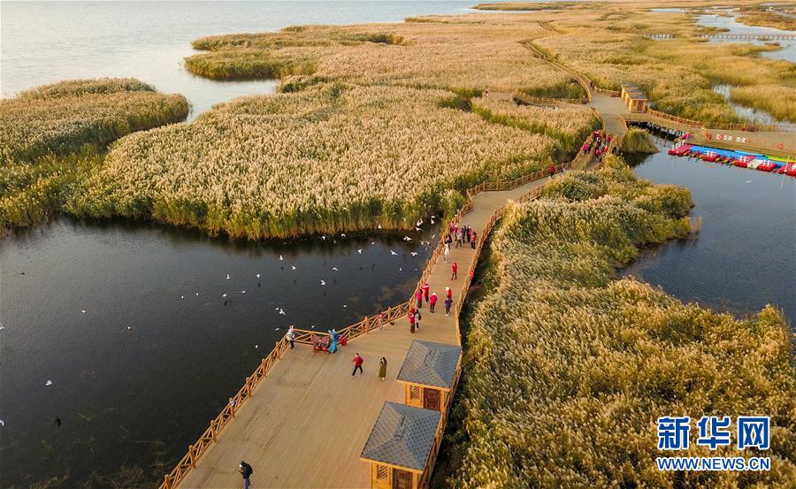 这是10月17日无人机拍摄的居延海风光。新华社记者 彭源 摄