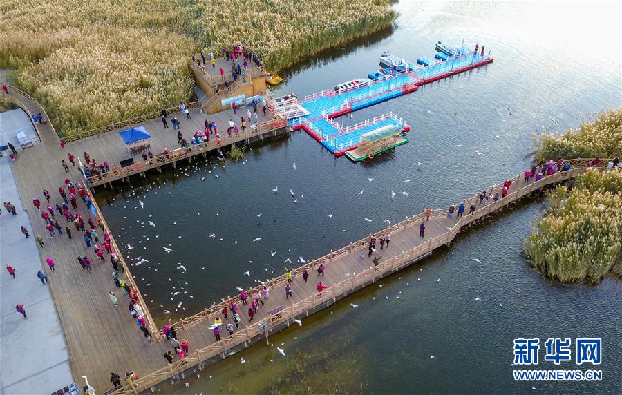 这是10月17日无人机拍摄的居延海码头。 新华社记者 彭源 摄