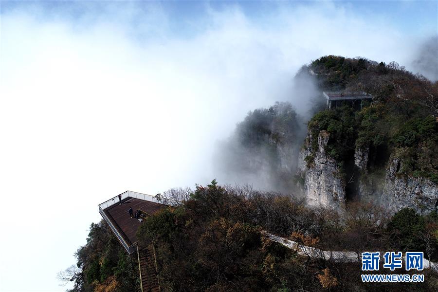 10月17日,游客在汉中市南郑区龙头山风景区拍照。 陕西省汉中市南郑区龙头山风景区位于川陕交界处米仓山主梁。龙头山景区常年云雾缭绕,宛如仙境,还有奇石、云海、彩林、雾凇等景观令游客流连忘返。 新华社记者 张博文 摄