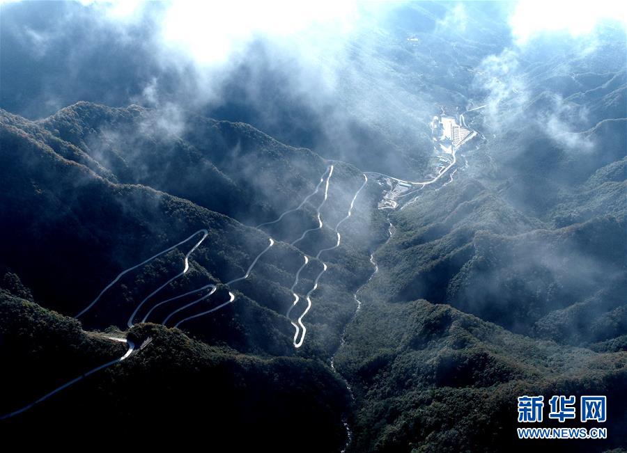 10月16日拍摄的汉中市南郑区龙头山风景区(无人机拍摄)。 新华社记者 张博文 摄