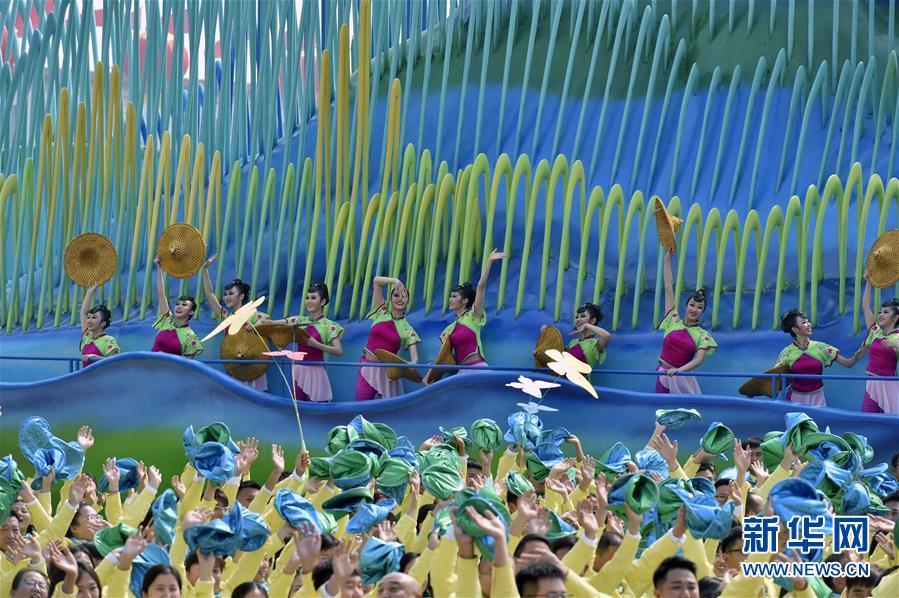 10月1日上午,庆祝中华人民共和国成立70周年大会在北京天安门广场隆重举行。这是群众游行中的“绿水青山”方阵。 新华社记者 周华 摄