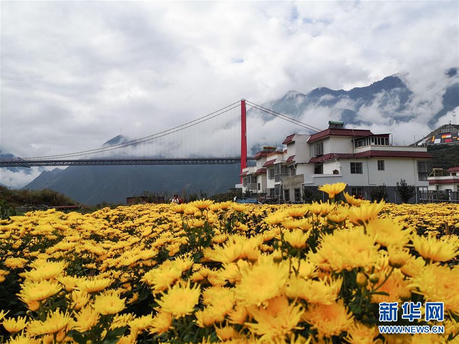 雅康高速泸定大渡河大桥下的泸桥镇咱里村试种的金丝黄菊迎来丰收(10月16日摄)。 新华社记者 江宏景 摄