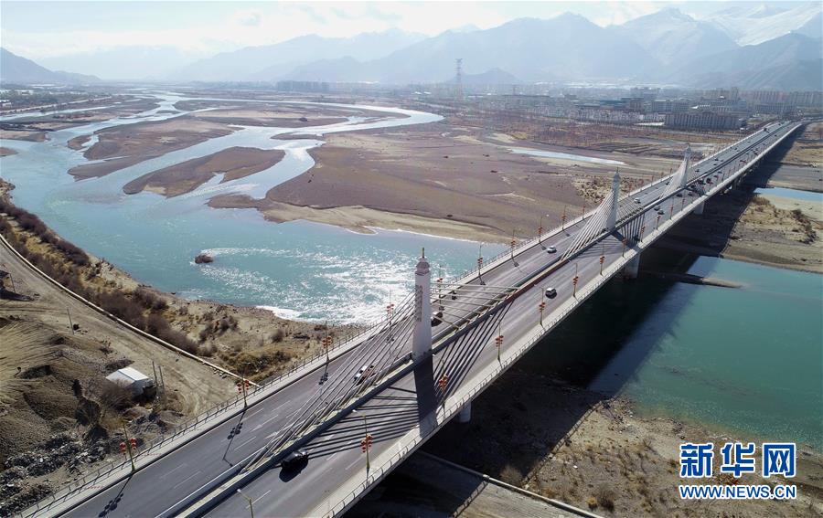 拉萨市环城路纳金大桥段(4月3日无人机拍摄)。 新华社记者 晋美多吉 摄