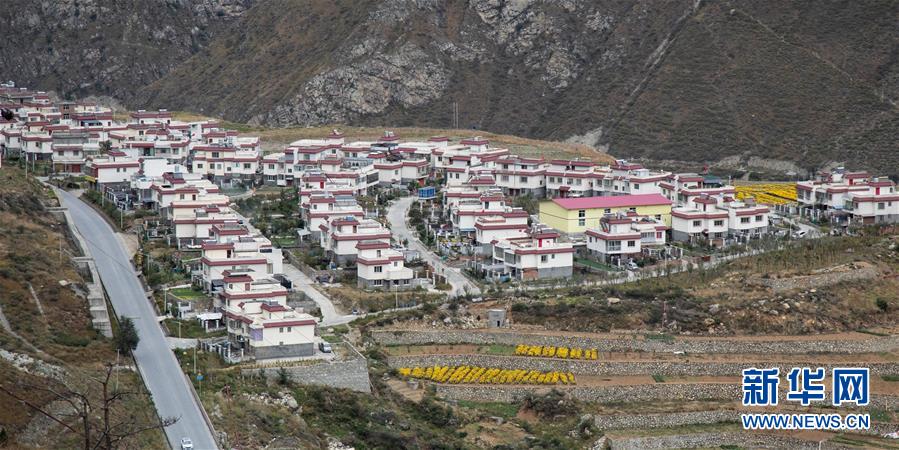 雅康高速泸定大渡河大桥下的泸定县泸桥镇咱里村(10月16日摄)。 新华社记者 江宏景 摄