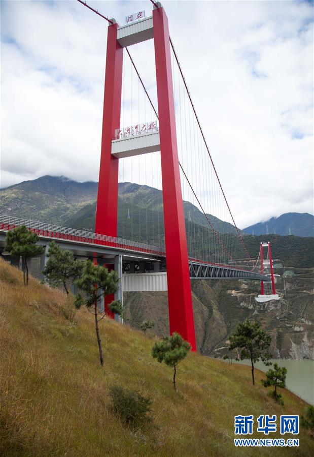 横跨大渡河两岸的雅康高速泸定大渡河大桥(10月16日摄)。 新华社记者 江宏景 摄