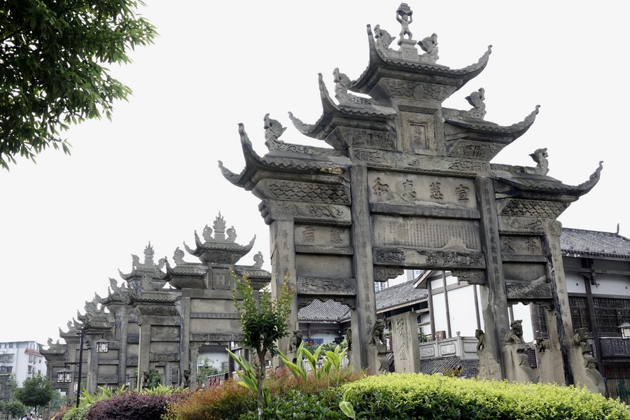 隆昌现存17座石牌坊,其中主要的13座呈念珠状坐北向南一字排列,位于隆昌城南北两端的古驿道中央,其余4座散布于乡间。李仁奇摄