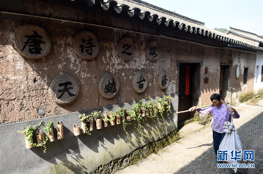 10月24日,班竹村一名老人挑货走在村内的道路上。新华社记者韩传号摄