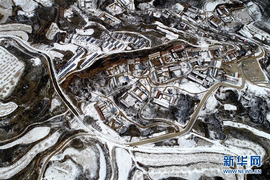 山西省武乡县大有乡王庄沟村雪景(2月15日无人机拍摄)。