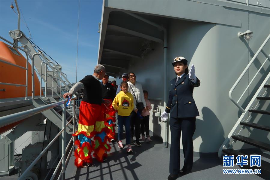 10月26日,在新西兰首都惠灵顿,人们登上中国海军训练舰戚继光舰参观。新华社发(张雪山摄)