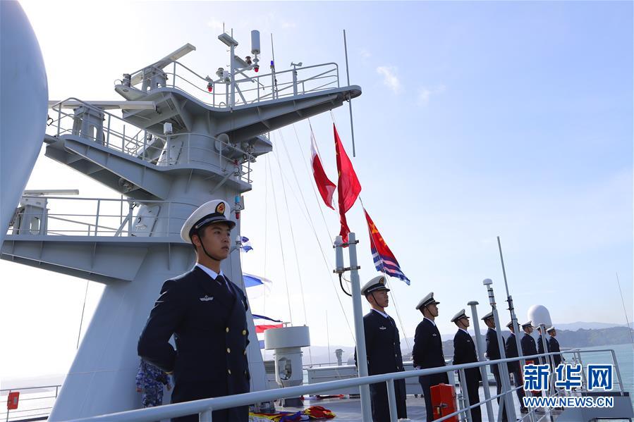 10月26日,在新西兰首都惠灵顿,中国海军训练舰戚继光舰抵达港口。新华社发(张浩宇摄)