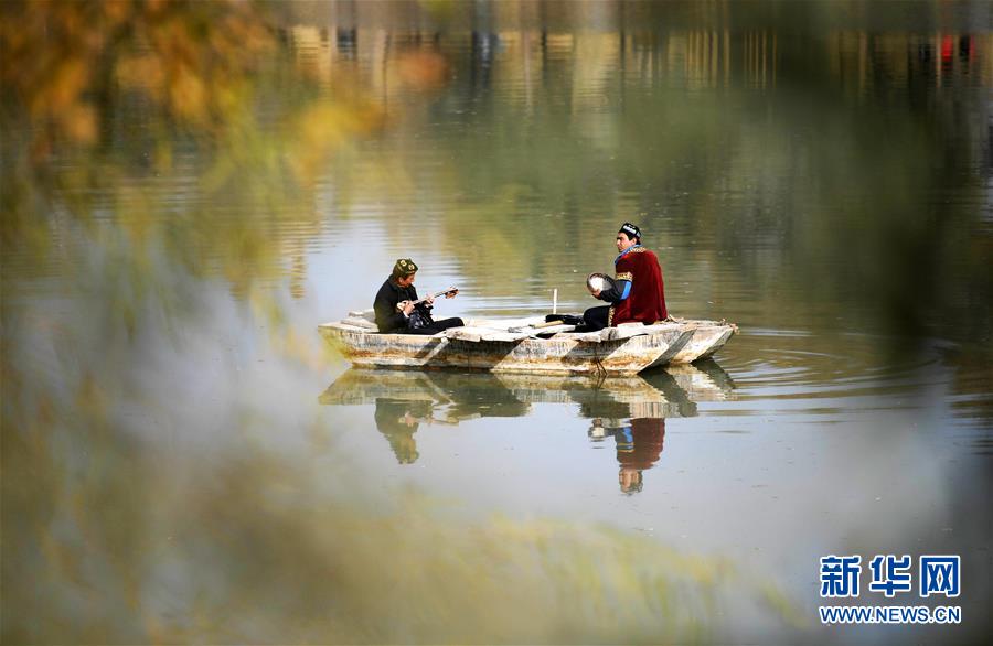 10月26日,民间艺人在新疆阿瓦提县刀郎部落景区表演节目。