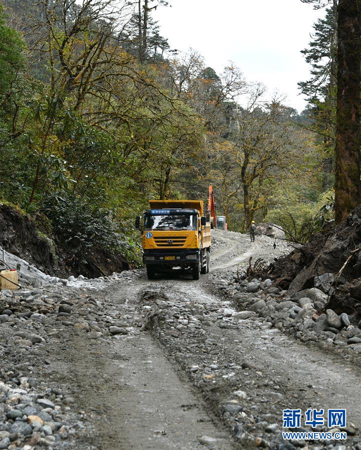 工程车在派墨农村公路施工现场作业(10月24日摄)。新华社记者李鑫摄