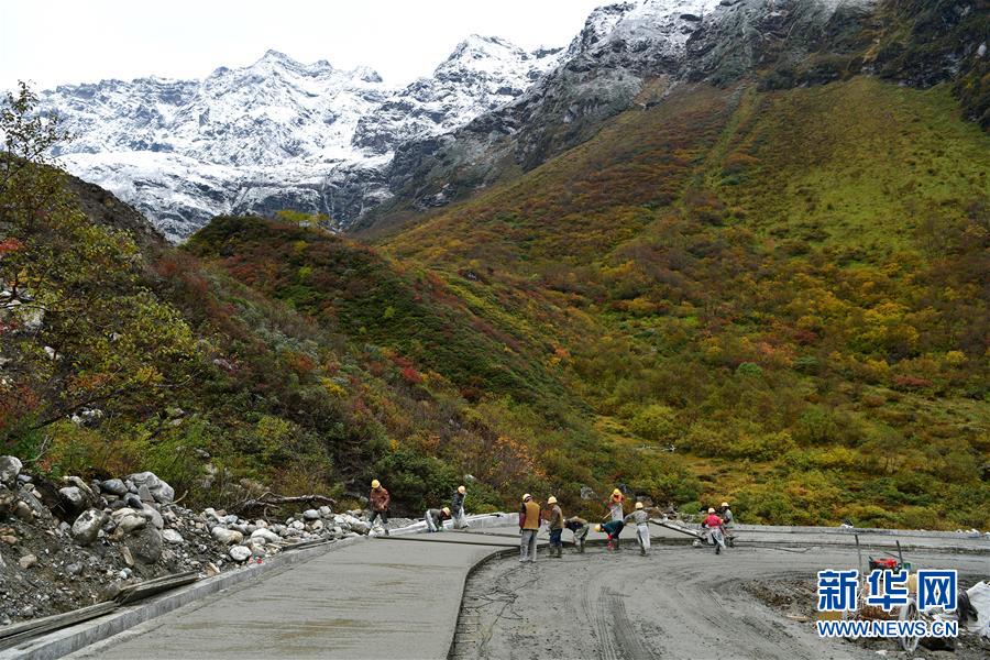 工人们在派墨农村公路施工现场作业(10月24日摄)。新华社记者李鑫摄