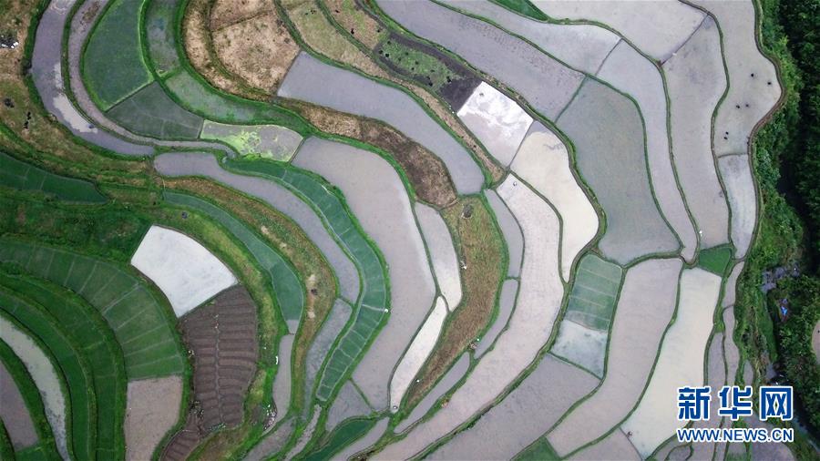 这是5月18日无人机拍摄的贵州省丹寨县龙泉镇高要梯田。初夏时节,位于贵州省丹寨县龙泉镇的高要梯田景色优美。新华社记者杨文斌摄