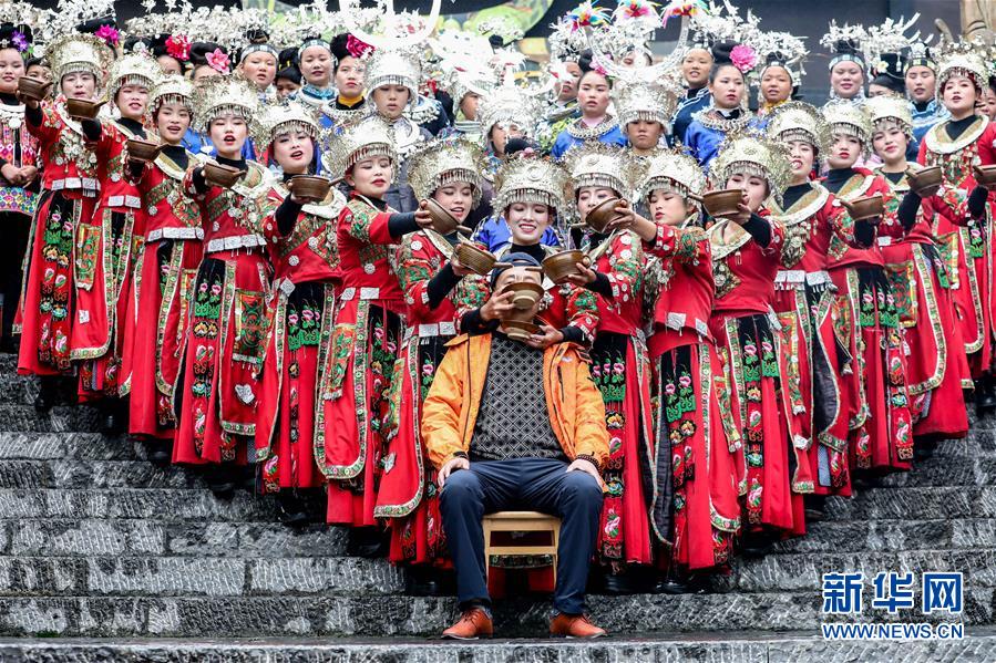 10月26日,苗族同胞用“高山流水”的方式给游客敬酒。新华社记者欧东衢摄