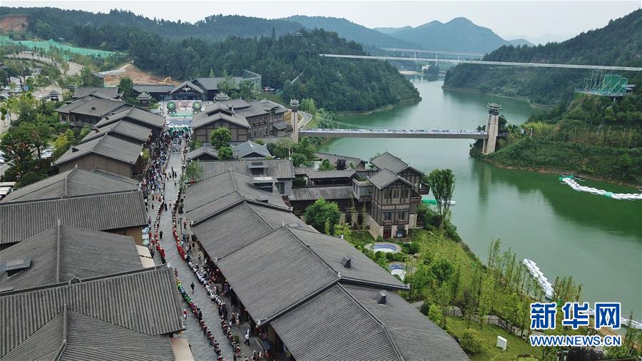 7月2日无人机拍摄的丹寨万达小镇一角。2017年7月,贵州省丹寨县的丹寨万达小镇对外开放。两年来,丹寨万达小镇游客接待量持续增长,为700余名贫困户提供就业岗位,有力助推了丹寨县的脱贫攻坚工作。新华社记者欧东衢摄