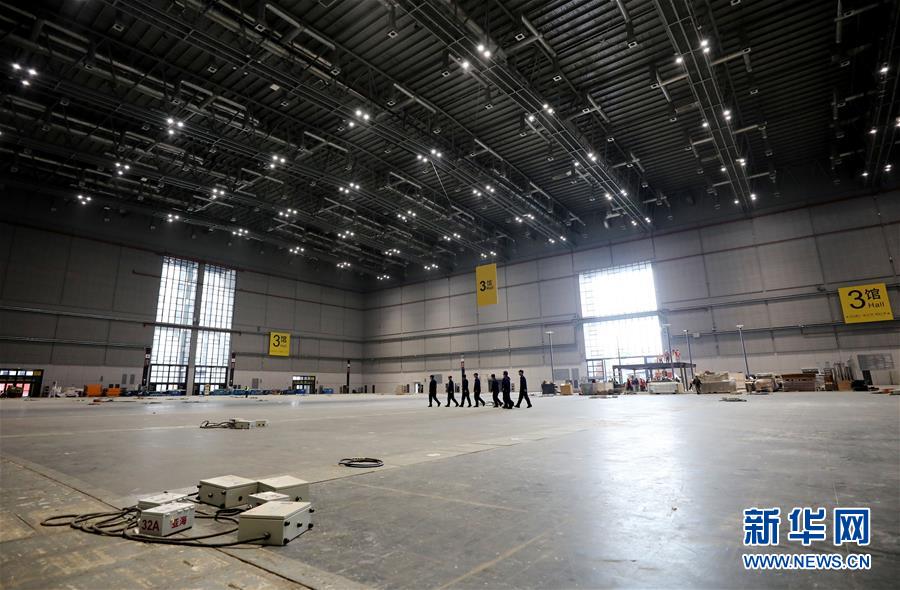 10月25日,在展馆内,展台框架搭建工作正在进行。 新华社记者 方喆摄