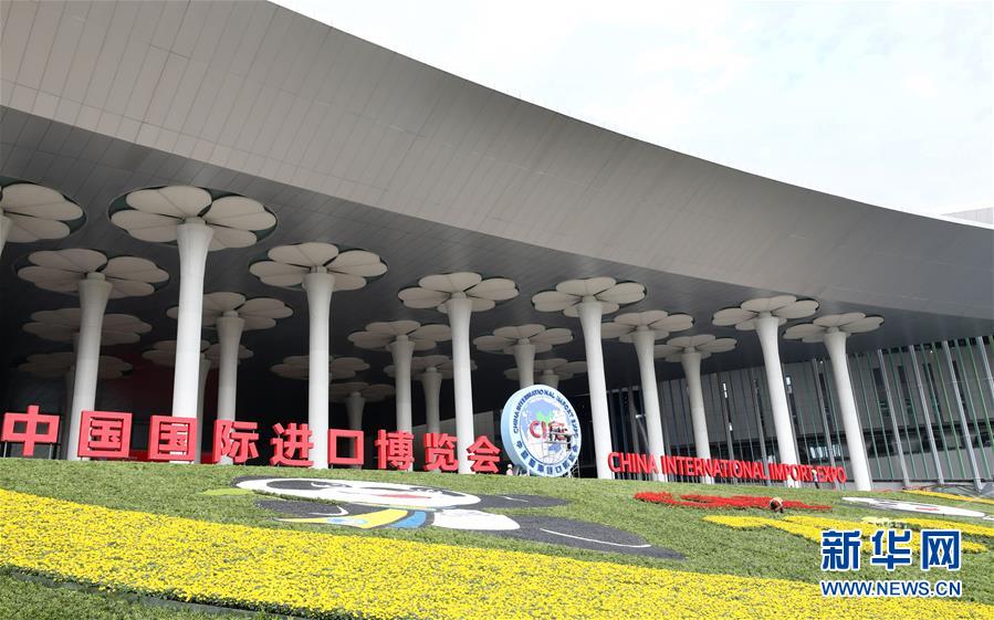 10月25日,这是国家会展中心(上海)南广场的鲜花装饰。 新华社记者 方喆摄