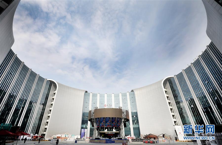 这是10月25日拍摄的位于国展中心中央广场的进博会中央舞台(中下)。 新华社记者 方喆摄