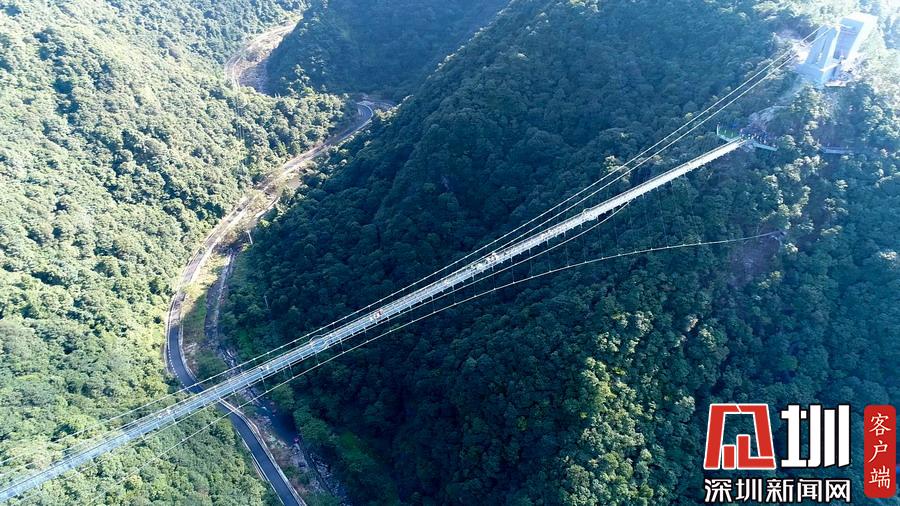 2019年8月24日,说到“玻璃天桥”,恐高的人双脚发抖,胆大的人跃跃欲试,在国内的湖南张家界、福建三明尤溪、河南嵩山三皇寨等地,已经出现了不少与自然景观、人文历史融为一体的玻璃天桥,让游客们大呼过瘾。现在,浙江台州人可以就近去三门过一把“行走在云端”的瘾了。今年夏天,全长419米、垂直高度199米玻璃景观悬索桥,出现在台州三门潘家小镇情人谷,刺激程度绝不亚于张家界玻璃桥。这座桥横跨牛郎峰、织女峰之间,可将潘家小镇的美丽风景尽收眼底。图为航拍玻璃天桥。