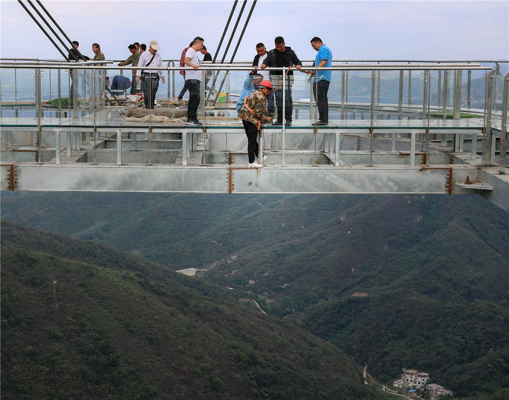 恐高勿入!“高空玻璃悬廊”在河南南阳七峰山落成