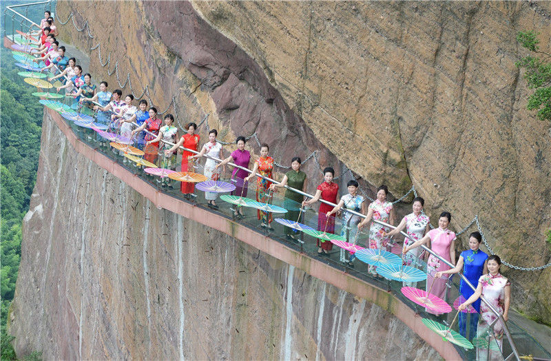 2017年7月1日,江西省弋阳国家级龟峰5A景区举行了一场旗袍秀。艾世民/视觉中国