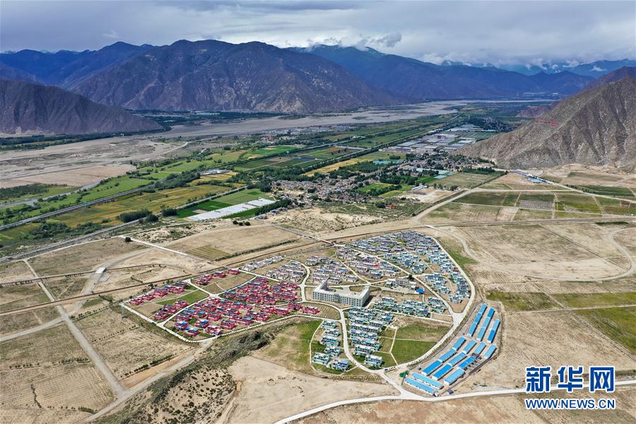 鸟瞰曲水县才纳乡四季吉祥村(8月8日无人机拍摄)。新华社记者普布扎西摄