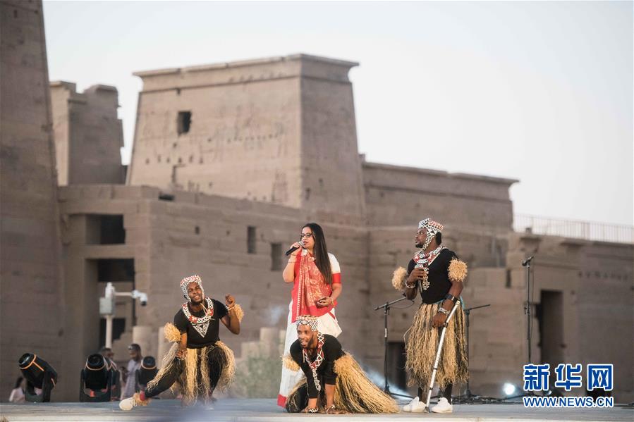 10月27日,演员在位于埃及阿斯旺的菲莱神庙表演。 第四届中非艺术节27日在埃及南部历史文化名城阿斯旺开幕。来自中国、埃及、尼日利亚、乌干达、突尼斯等约30个国家的艺术团在开幕式上奉献了各具特色的表演,吸引数百名当地观众前往欣赏。 新华社记者 邬惠我 摄