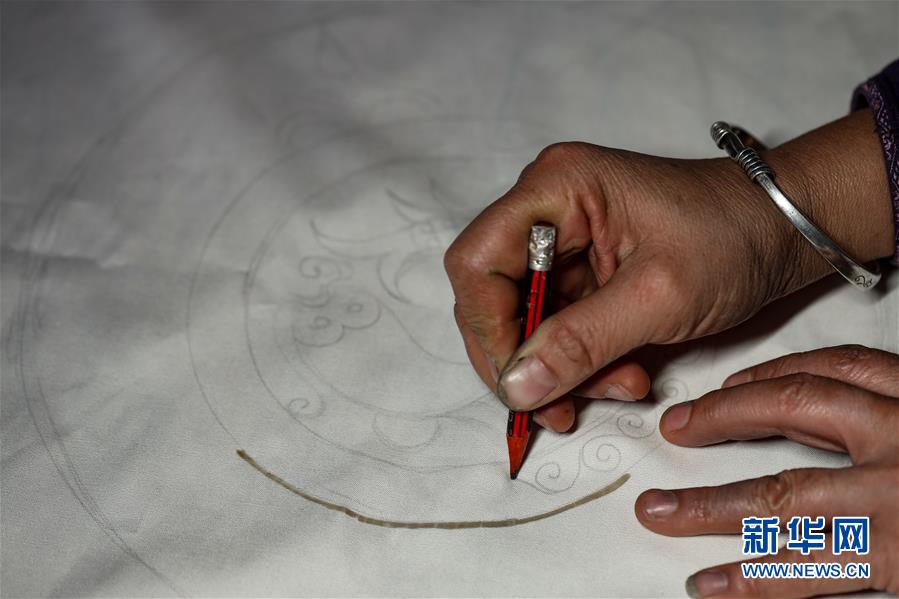 10月28日,杨芳在设计蜡染图案。新华社记者 欧东衢 摄