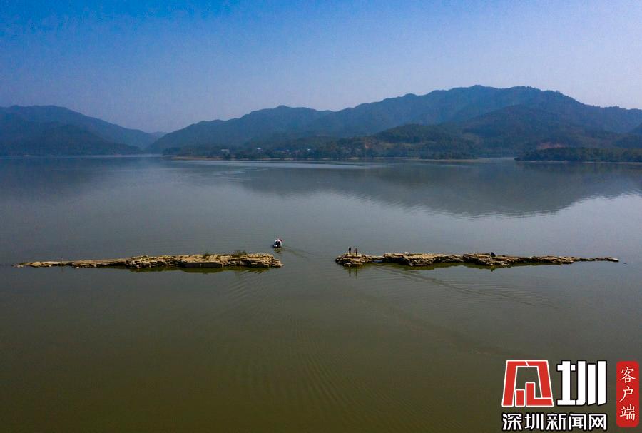 2019年10月30日,江西仙女湖旅游股份有限公司测量人员乘坐工作船对明代万年桥进行测量,该桥桥身凸出水位最高处达1.64米。