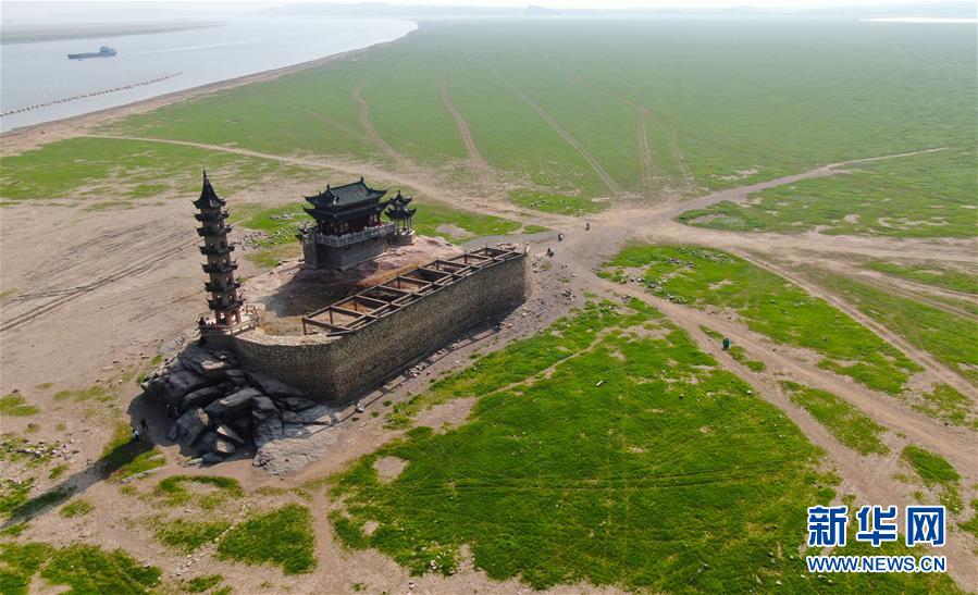 这是江西省庐山市鄱阳湖湖区的落星墩(10月9日无人机拍摄)。新华社记者胡晨欢摄