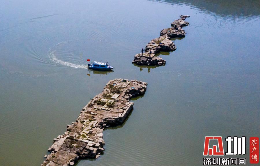 江西新余仙女湖水位下降 明代万年桥再现容颜