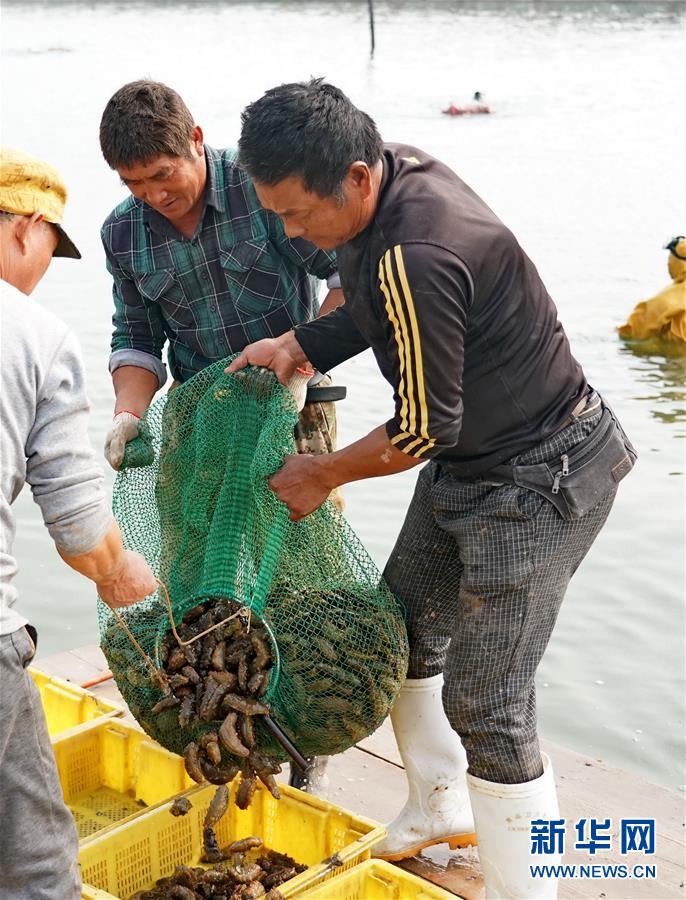 10月30日,乐亭县姜各庄镇一处海参养殖基地的工人将捕捞的海参从渔具中倒出。 新华社记者杨世尧摄