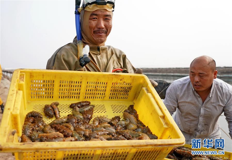 河北乐亭:收获海参