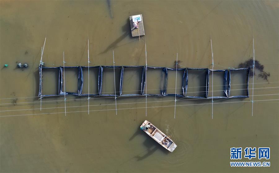 江西省南昌市新建区象山镇河林村的农户正在大闸蟹养殖基地进行捕捞(10月29日无人机拍摄)。 时下正值大闸蟹收获的季节,江西省南昌市新建区象山镇河林村的村民忙着进行大闸蟹的捕捞、包装和外销工作。近年来,当地依托辖区内河道纵横、水田众多的资源优势,支持鼓励当地农村引进发展大闸蟹养殖业,目前已有大闸蟹特色养殖基地300余亩,年产值超过200万元,为当地农户开辟一条特色养殖的致富路。 新华社记者 彭昭之 摄