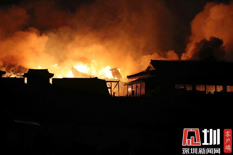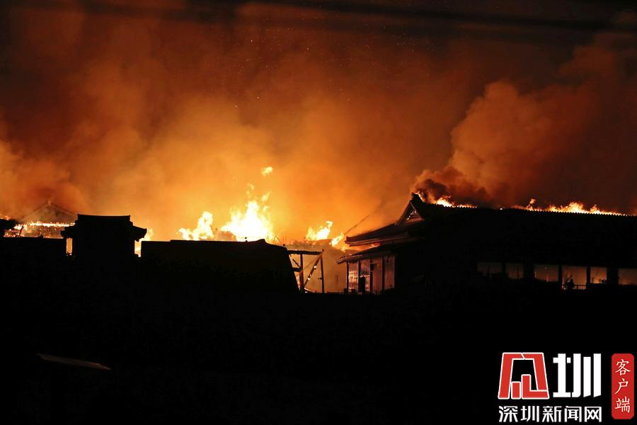 日本冲绳县那霸市的琉球王国都城遗址首里城火灾现场。