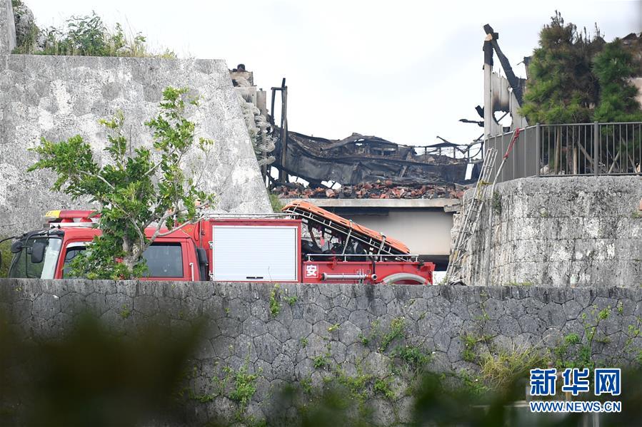 这是10月31日在日本冲绳县那霸市的琉球王国都城遗址首里城拍摄的被烧毁的建筑。新华社记者华义摄